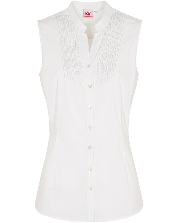 Luis Trenker Armellose Bluse Brigitte Stehkragen Schluppe Ecru Mode Schodlbauer