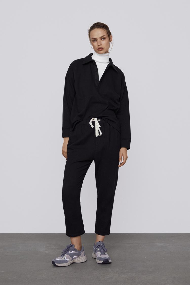 Spodnie Z Zaszewkami I Wiazaniem Zara Polska Poland In Bundfaltenhose Frau Hemdbluse
