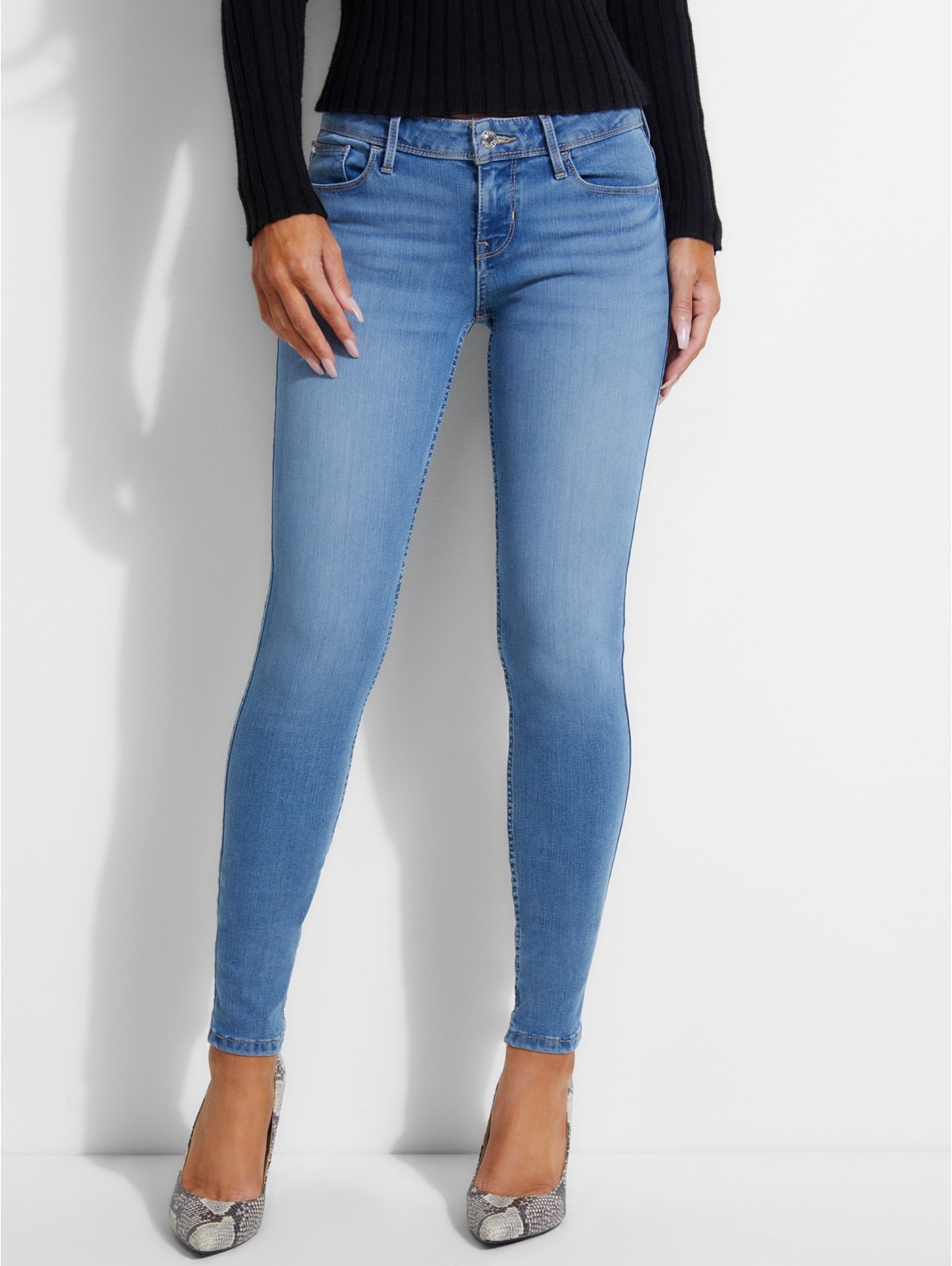 View All Sweater & Knit GUESS LIST WELCOME OFFER Discount and shipping offer valid for onetime use per email and per household Offer valid January 1, at 600 am PT through December 31. Low rise, sits low on hips Ultraskinny fit with ultraskinny leg Indigo Wash Mediumdark blue indigo shade with hand sanding, tacking and natural whisker pattern Due to the nature of the fabric and wash, each garment has its own unique appearance Fivepocket construction Zip fly 75" low front rise 125" back rise 95" leg opening 29. These lowrise skinny jeans sit right at the hips for a look that's versatile and goes with everything Fivepocket construction Zip fly Low rise, sits low on hips cm front rise 33cm back rise 26cm leg opening 76cm inseam Measurements taken from a size 27 Due to the nature of the fabric and wash, each garment has its own unique.