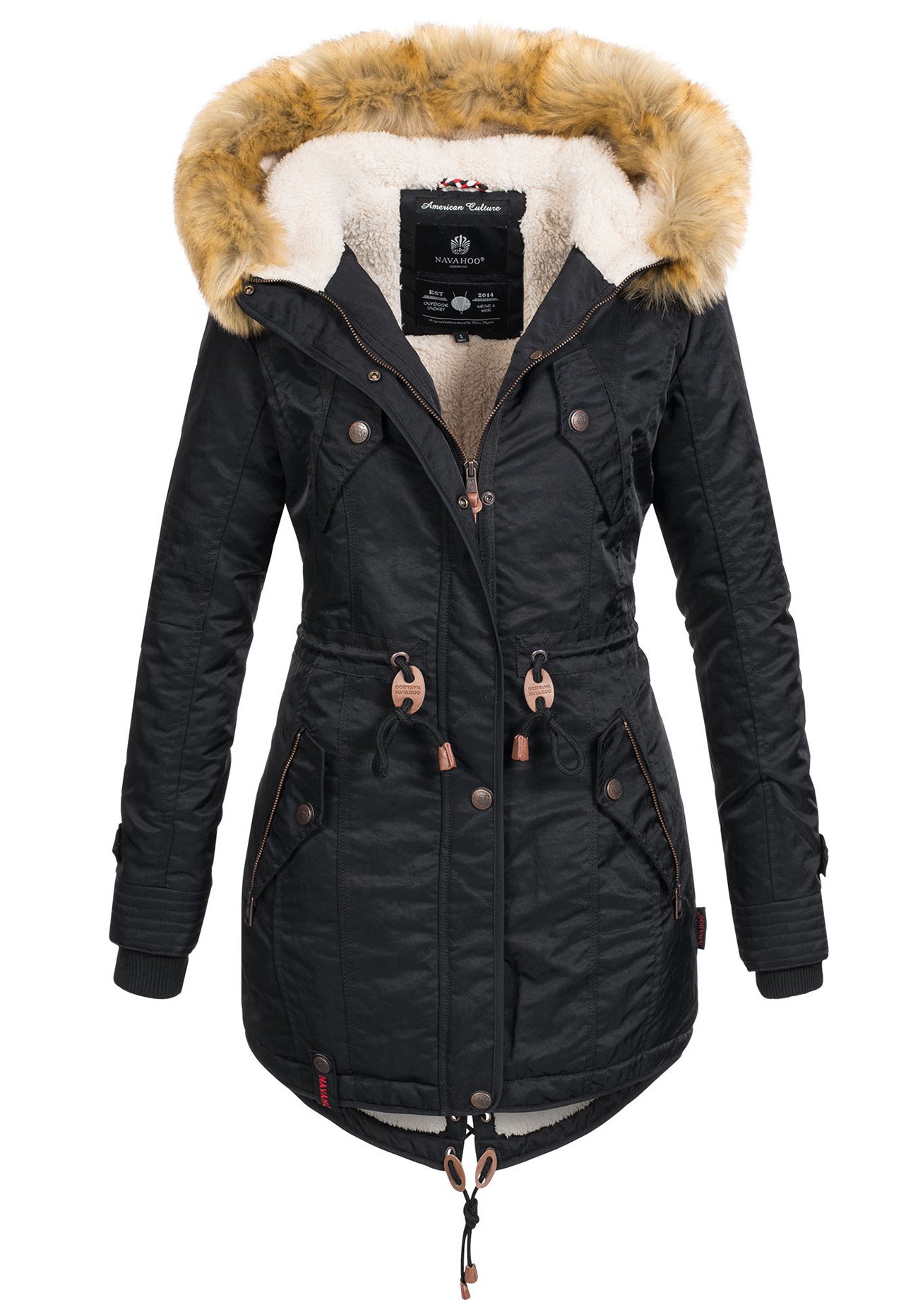 Navahoo Warme Damen Winter Jacke Lang Teddyfell Winterjacke Parka Mantel B648 Ebay