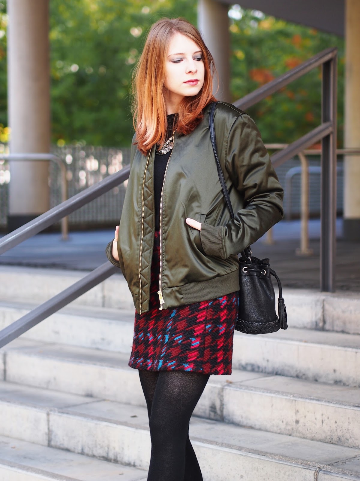 Outfit Grune Bomberjacke Und Rot Karierter Topshop Rock The Fashionable Blog