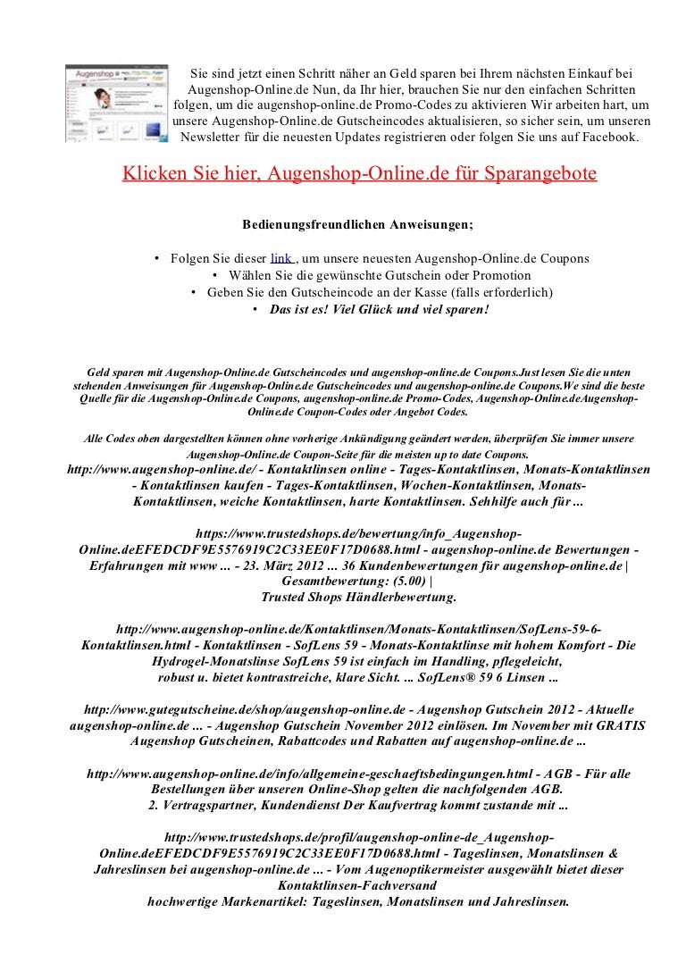 Augenshop Online De Gutscheincode Rabatt