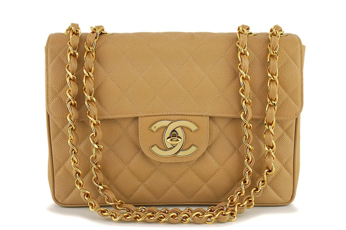 Chanel Vintage Camel Beige Caviar Jumbo Classic Flap Bag 24k Ghw Leprix