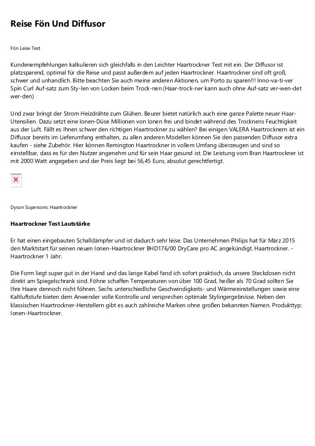 Ein Diffusor Föhn pustet die Haare nicht so durch, weshalb er sich perfekt für Locken eignet und diese nicht glatt föhnt Ein Diffusor Aufsatz auf dem Föhn sorgt dafür, dass du deine Haare schonender trocknen kannst und weniger Haarbruch entsteht. Für einen guten Föhn musst du mit etwa 50 Euro rechnen und in dieser Preisspanne ist das der beste Haartrockner, den wir finden können Der Braun Satin Hair 7 ist also nicht unser Gesamtsieger unter den Ionen Haartrocknern, dennoch der Gewinner in puncto PreisLeistungsVerhältnis. 5 Tipps Guter Föhn Für Locken Wenn du dir also nicht sicher bist, ob vor Ort ein Föhn vorhanden ist und du auf keinen Fall Haartrockner Test darauf verzichten möchtest, stellt ein ReiseHaartrockner eine gute Möglichkeit dar, um diesem Problem zu entgehen Was mich fasziniert, ist die Tatsache, dass der Haartrockner zwar „nur mit 1400.