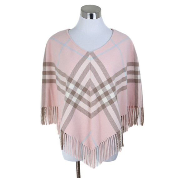 Burberry Pink Plaid Merino Wool Poncho Leprix